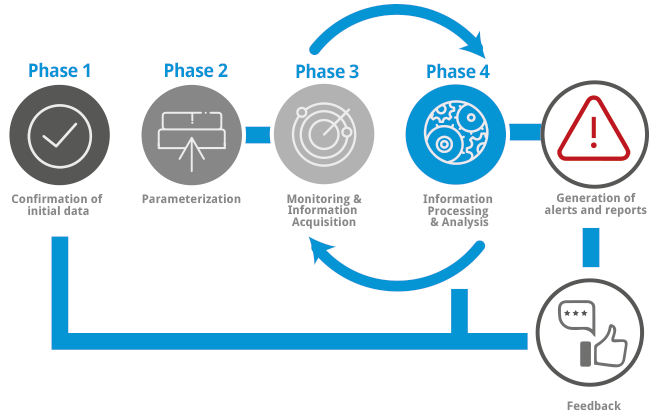 This first phase is optional. If requested, Internet Security Auditors will provide advisory services on the information sources and/or social networks where it may be of interest to deploy probes for monitoring, as well as the most suitable service characteristics given the idiosyncrasies of each organization.